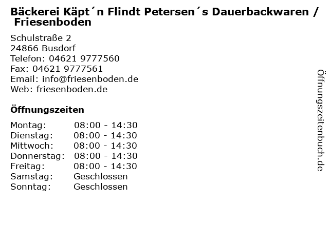 Branchen & Suchbegriffe zu Bäckerei Käpt´n Flindt Petersen´s Dauerbackwaren / Friesenboden:bäckerei, dauerbackwaren, flindt, friesenboden, käpt'n, käpt´n, petersen's, petersen´s, torten, tortenboden |