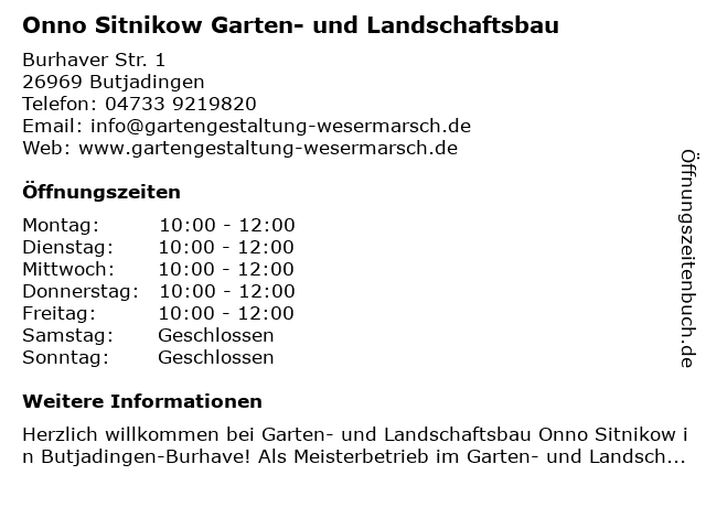 Branchen & Suchbegriffe zu Onno Sitnikow Garten- und Landschaftsbau:garten, landschaftsbau, landschaftsgärtner, onno, service für baumbeschneidung, sitnikow |