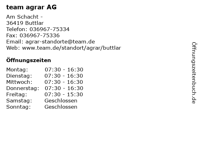 | Öffnungszeiten team agrar AG in Buttlar anzeigen | |