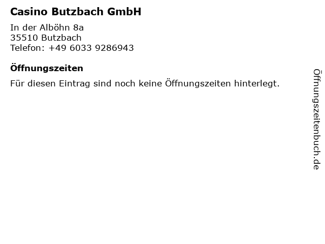 | Telefonnummer Casino Butzbach GmbH in Butzbach (+49 6033 9286943) anrufen | |
