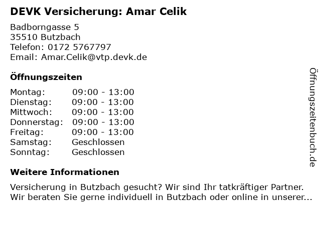 4 DEVK Versicherungen: (Berater*in ausgeschieden) (Entfernung: 11,37 km) Frankfurter Str. 62, 35625 Hüttenberg 6 DEVK Versicherungen: Daniel-David Crowley (Berater*in ausgeschieden) (Entfernung: 12,38 km) Schnurgasse 8, 61169 Friedberg (Hessen) |