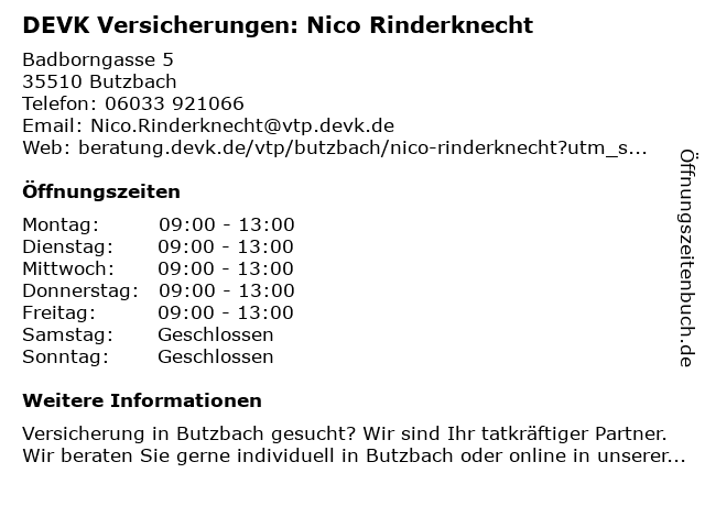 3 DEVK Versicherungen: (Berater*in ausgeschieden) (Entfernung: 11,36 km) Frankfurter Str. 62, 35625 Hüttenberg 5 DEVK Versicherungen: Daniel-David Crowley (Berater*in ausgeschieden) (Entfernung: 12,38 km) Schnurgasse 8, 61169 Friedberg (Hessen) 6 |