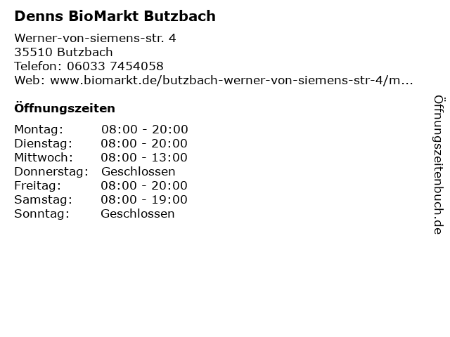 | Öffnungszeiten Denns BioMarkt Butzbach in Butzbach anzeigen | |