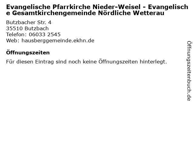 | Evangelische Pfarrkirche Nieder-Weisel - Evangelische Gesamtkirchengemeinde Nördliche Wetterau anrufen | |