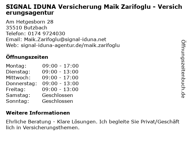 Branchen & Suchbegriffe zu SIGNAL IDUNA Versicherung Maik Zarifoglu - Versicherungsagentur:iduna, maik, signal, versicherung, versicherungsagentur, zarifoglu |