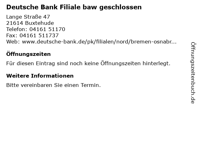| Deutsche Bank Filiale baw geschlossen anrufen | |