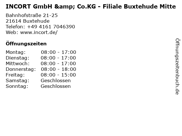 Branchen & Suchbegriffe zu INCORT GmbH & Co.KG - Filiale Buxtehude Mitte:buxtehude, co.kg, incort, mitte |