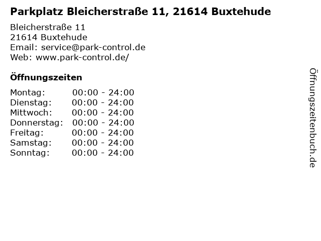 | Öffnungszeiten Parkplatz Bleicherstraße 11, 21614 Buxtehude in Buxtehude anzeigen | |
