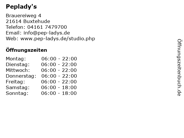 | Öffnungszeiten Peplady's in Buxtehude anzeigen | |