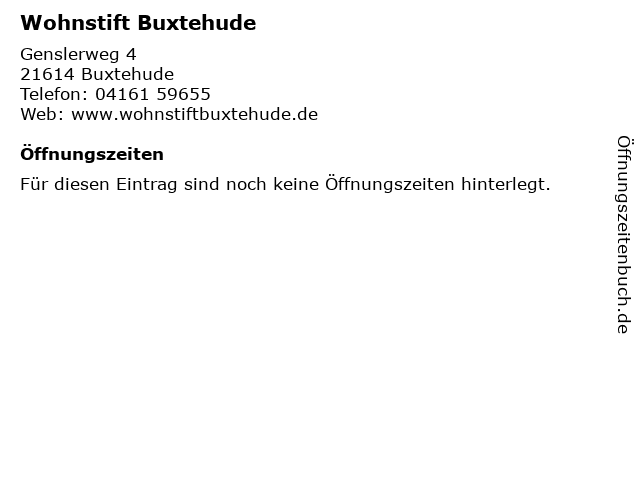 | Öffnungszeiten Wohnstift Buxtehude in Buxtehude anzeigen | |