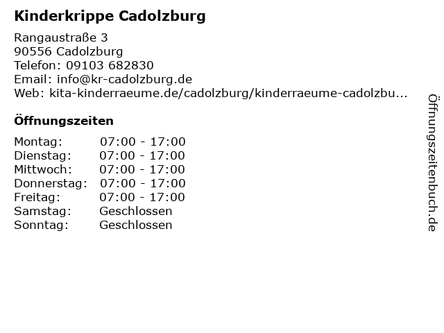 | Öffnungszeiten Kinderkrippe Cadolzburg in Cadolzburg anzeigen | |