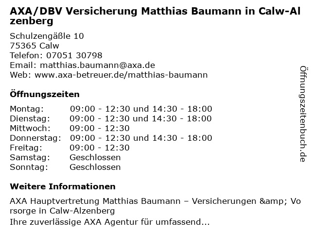 Branchen & Suchbegriffe zu AXA/DBV Versicherung Matthias Baumann in Calw-Alzenberg:altersvorsorge, alzenberg, autoversicherung, axa/dbv, baumann, berufshaftpflichtversicherung, berufsunfähigkeitsversicherung, gebäude- und hausratsversicherung, lebensversicherung, matthias, unternehmen für versicherungsfachfragen, versicherung, zahnmedizinische versicherung |