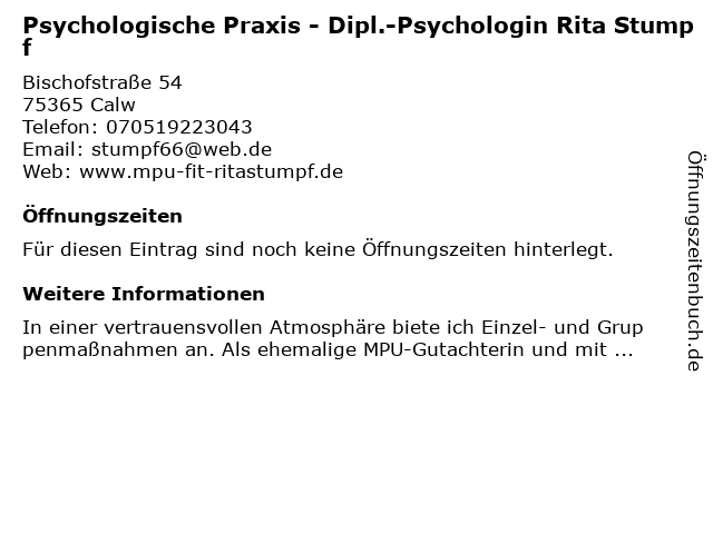 | Psychologische Praxis - Dipl.-Psychologin Rita Stumpf anrufen | |