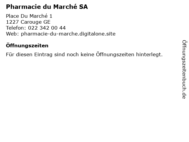 | Öffnungszeiten Pharmacie du Marché SA in Carouge GE anzeigen | |