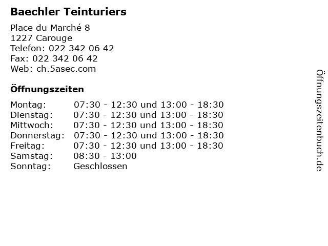 | Öffnungszeiten Baechler Teinturiers in Carouge anzeigen | |