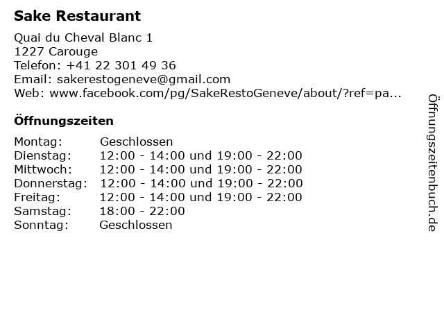 | Öffnungszeiten Sake Restaurant in Carouge anzeigen | |