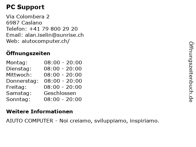 Öffnungszeiten PC Support in Caslano anzeigen | |