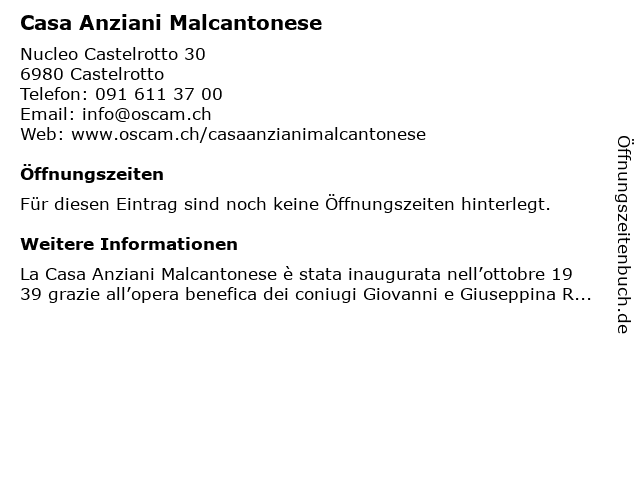 Öffnungszeiten Casa Anziani Malcantonese in Castelrotto anzeigen