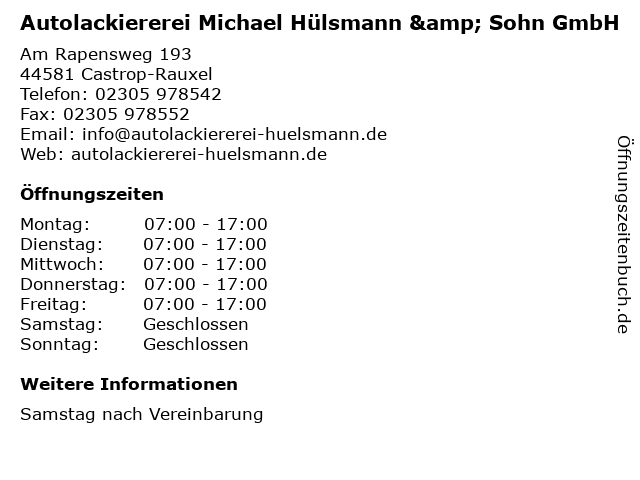 Branchen & Suchbegriffe zu Autolackiererei Michael Hülsmann & Sohn GmbH:autolackiererei, hülsmann, kunststoffarbeiten, lackierarbeiten, michael, reifenwechsel & einlagerung, sohn |