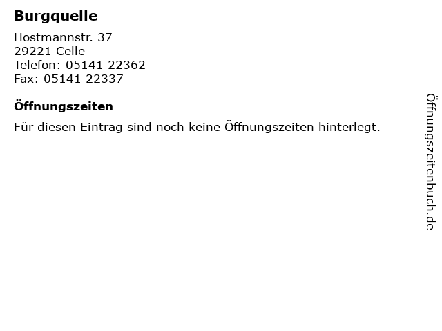 | Öffnungszeiten Burgquelle in Celle anzeigen | |