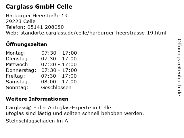 | Öffnungszeiten Carglass GmbH Celle in Celle anzeigen | |