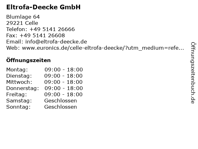 | Adresse Eltrofa-Deecke GmbH in Celle anzeigen |