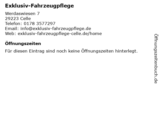 | Öffnungszeiten Exklusiv-Fahrzeugpflege in Celle anzeigen | |