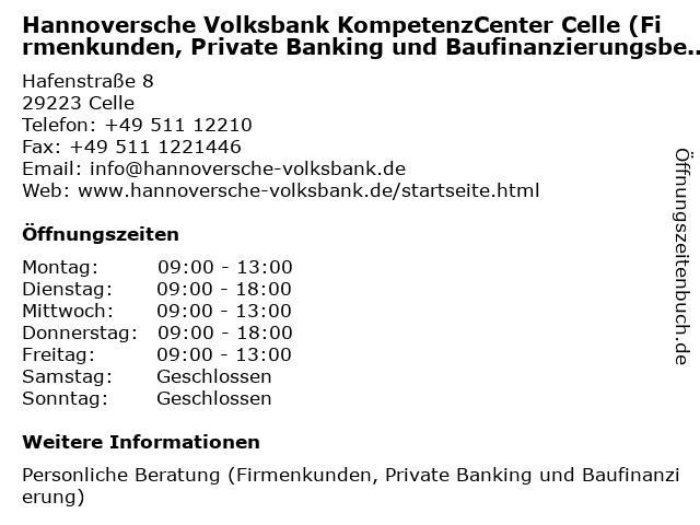 Branchen & Suchbegriffe zu Hannoversche Volksbank KompetenzCenter Celle (Firmenkunden, Private Banking und Baufinanzierungsberatung):bank, banking, baufinanzierung, baufinanzierungsberatung, celle, firmenkunden, geldanlage, girokonto, hannoversche, kompetenzcenter, kredit, kreditkarte, private, vermögensberatung, versicherung, volksbank |