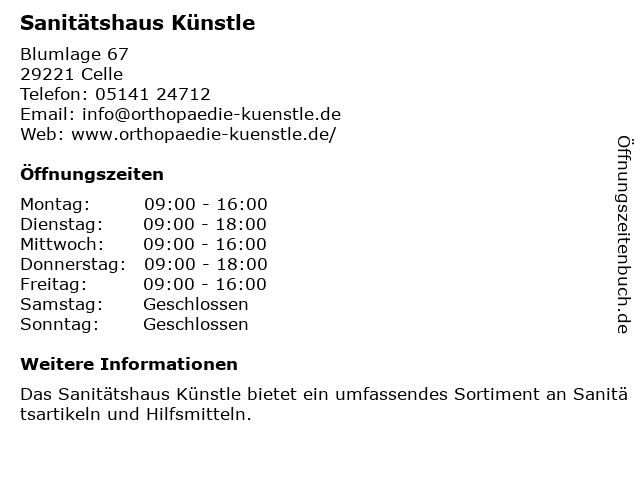 | Öffnungszeiten Sanitätshaus Künstle in Celle anzeigen | |