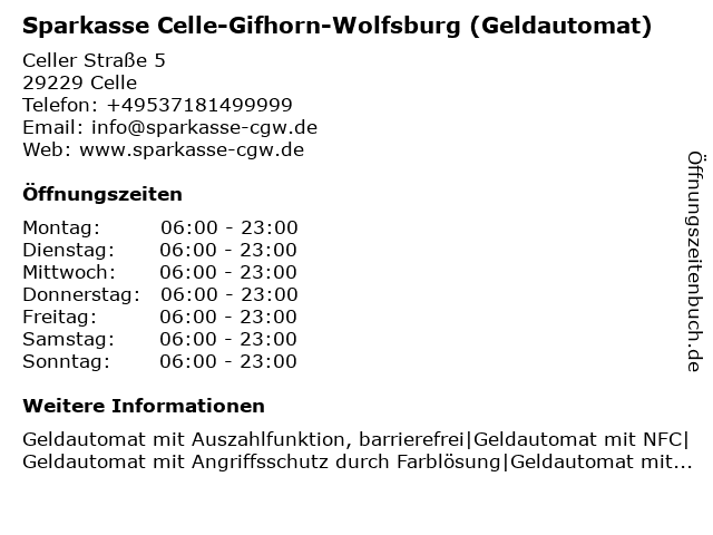 Branchen & Suchbegriffe zu Sparkasse Celle-Gifhorn-Wolfsburg (Geldautomat):celle, geldautomat, gifhorn, sparkasse |