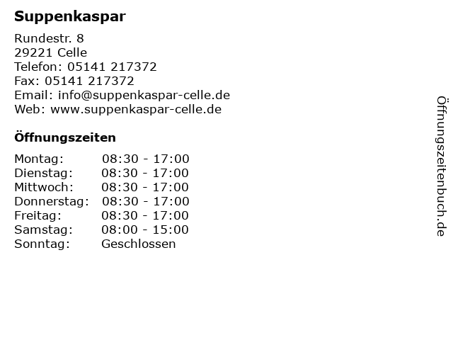 | Öffnungszeiten Suppenkaspar in Celle anzeigen | |