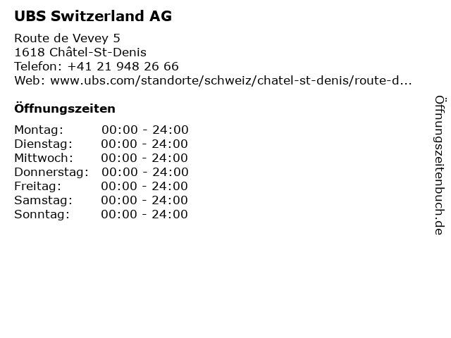 Öffnungszeiten UBS Switzerland AG