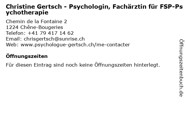 | Christine Gertsch - Psychologin, Fachärztin für FSP-Psychotherapie anrufen | |