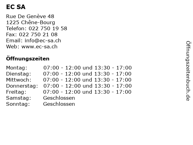 | Öffnungszeiten EC SA in Chêne-Bourg anzeigen | |