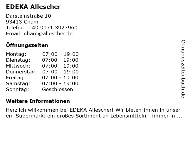 | Öffnungszeiten EDEKA Allescher in Cham anzeigen | |
