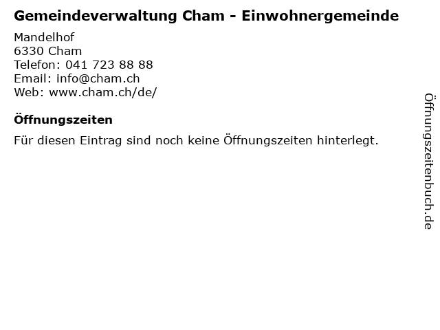 | Gemeindeverwaltung Cham - Einwohnergemeinde anrufen | |
