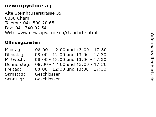 | Öffnungszeiten newcopystore ag in Cham anzeigen | |