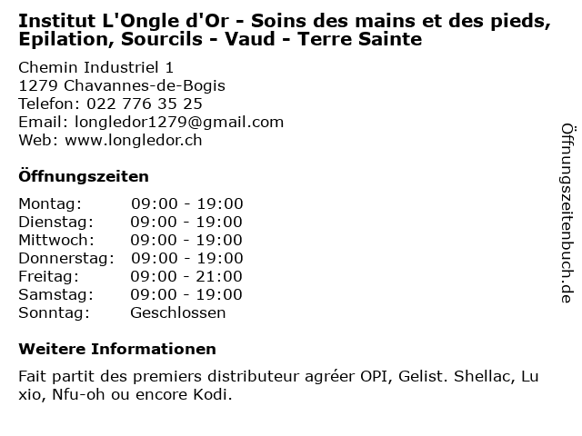Branchen & Suchbegriffe zu Institut L'Ongle d'Or - Soins des mains et des pieds, Epilation, Sourcils - Vaud - Terre Sainte:d'or, des, epilation, et, haarentfernung: waxing, institut, l'ongle, mains, pieds, sainte, schönheitssalon, soins, sourcils, terre, vaud |