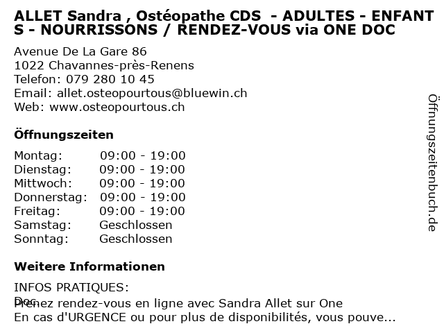 Branchen & Suchbegriffe zu ALLET Sandra , Ostéopathe CDS - ADULTES - ENFANTS - NOURRISSONS / RENDEZ-VOUS via ONE DOC:adultes, allet, alternative heilmethoden, cds, doc, enfants, kinderärzte, kurkliniken, naturheilkunde, nourrissons, one, ostéopathe, rendez, sandra, via, vous |