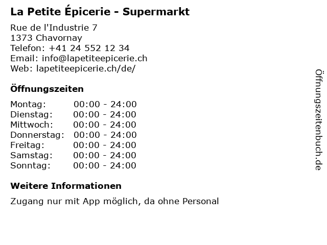 Öffnungszeiten La Petite Épicerie - Supermarkt