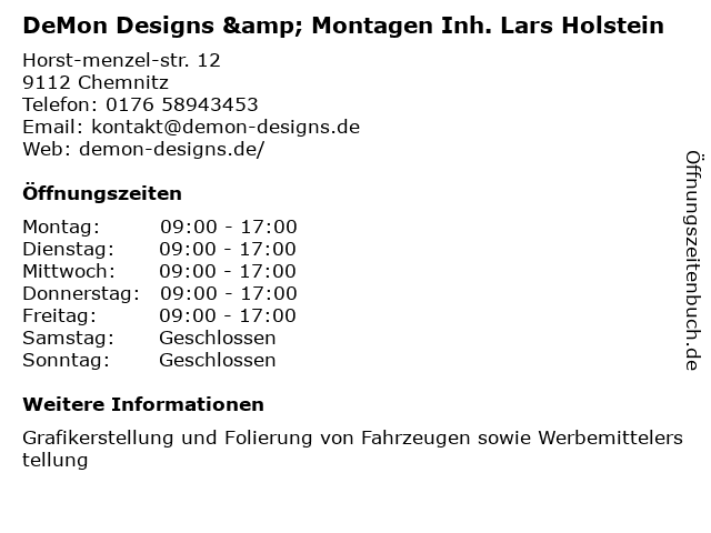 Branchen & Suchbegriffe zu DeMon Designs & Montagen Inh. Lars Holstein:demon, designs, grafikdesigner, holstein, lars, montagen, werbeagentur |