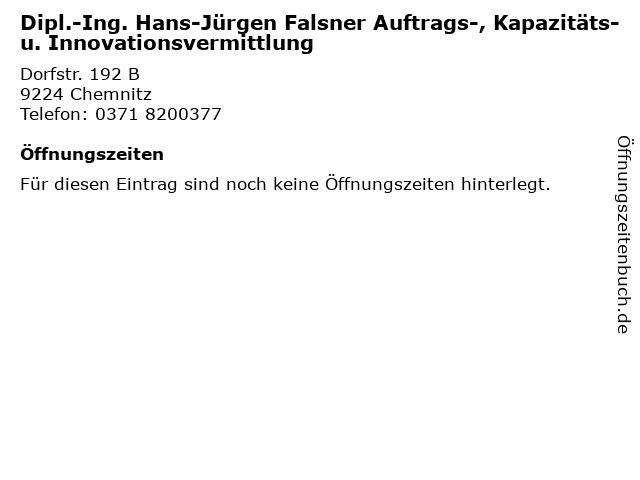 | Dipl.-Ing. Hans-Jürgen Falsner Auftrags-, Kapazitäts- u. Innovationsvermittlung anrufen | |