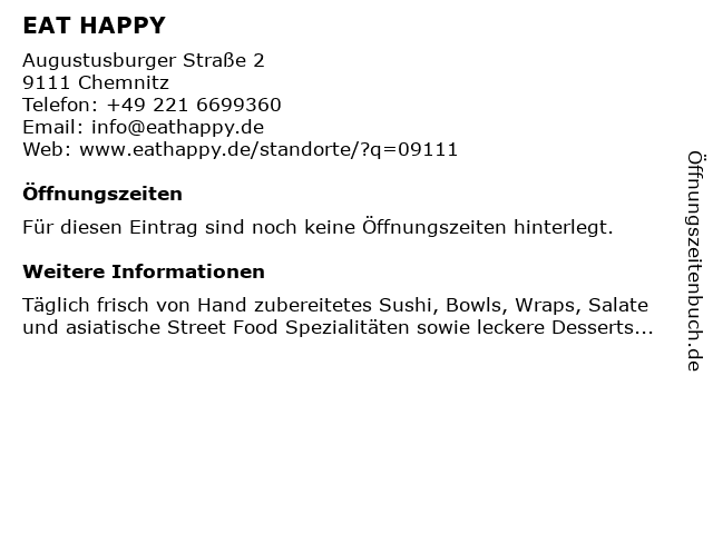 Öffnungszeiten EAT HAPPY in Chemnitz anzeigen | |