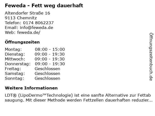 | Öffnungszeiten Feweda - Fett weg dauerhaft in Chemnitz anzeigen | |