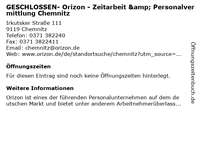 GESCHLOSSEN- Orizon - Zeitarbeit & Personalvermittlung Chemnitz anrufen | |