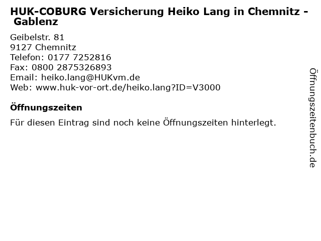 | HUK-COBURG Versicherung Heiko Lang in Chemnitz - Gablenz anrufen | |