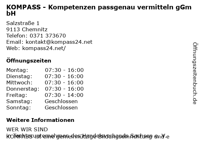 Branchen & Suchbegriffe zu KOMPASS - Kompetenzen passgenau vermitteln gGmbH:ggmbh, kompass, kompetenzen, passgenau, vermitteln |