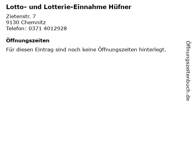 | Lotto- und Lotterie-Einnahme Hüfner anrufen | |