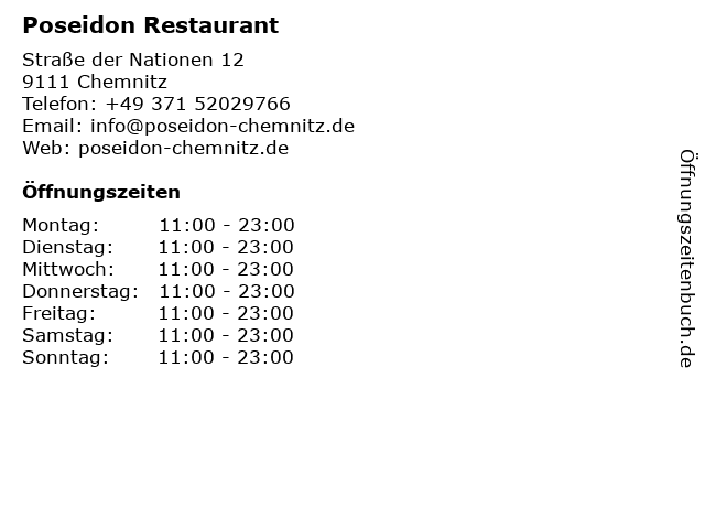 | Öffnungszeiten Poseidon Restaurant in Chemnitz anzeigen | |
