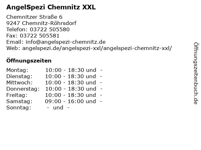 Branchen & Suchbegriffe zu AngelSpezi Chemnitz XXL:angelspezi, bis, echolotverleih, fliegenfischen, lebendköder, märz, oktober, xxl |